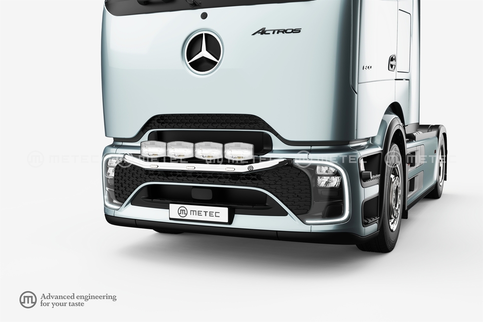 ME Přední ochranný nerezový rám pro 4 přídavná světla s 3 LED pozičkami pro MB Actros 2025-